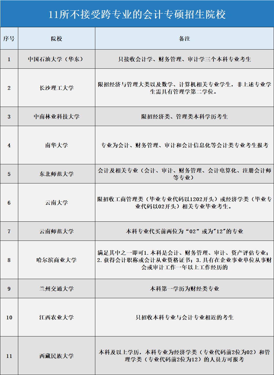 2022MPAcc擇校:11所不接受跨專(zhuān)業(yè)的會(huì)計(jì)專(zhuān)碩招生院校