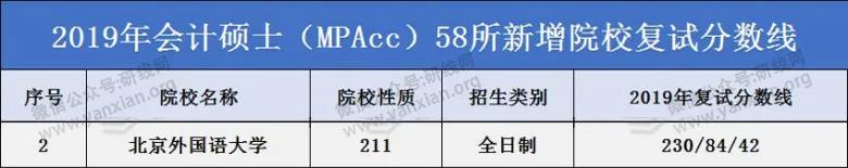 北京外國語大學2020年會計專碩復試分數線為216分,2019年會計專碩復試分數線為230分
