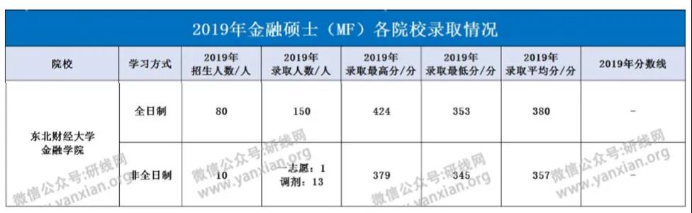 由于2020年錄取人數暫未公布,研線菌為同學們整理了東北財經大學2019年金融專碩的錄取情況,以上數據,僅供參考!