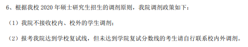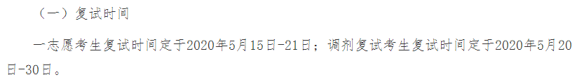 2020年5月15日進行一志愿考生復試,5月20日調劑系統開放后接受調劑;一志愿生源不充足的專業接受調劑,且不接收校外調劑