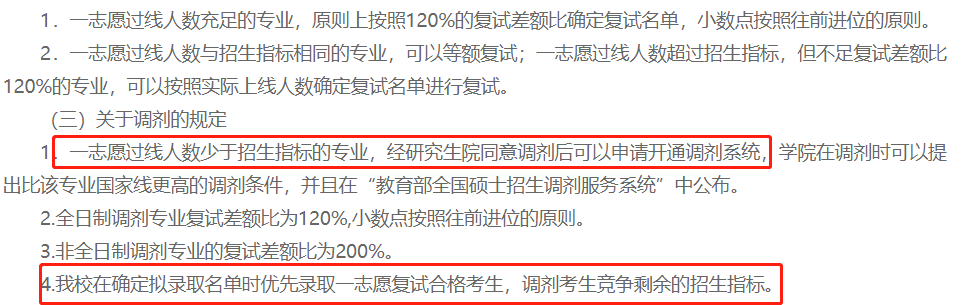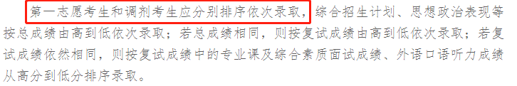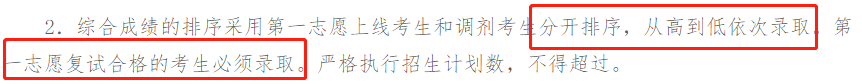 一志愿早于調劑生進行復試,且分開排名依次錄取,一志愿復試合格考生必須錄取。