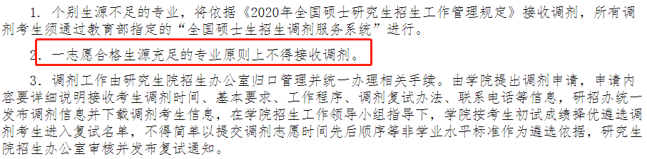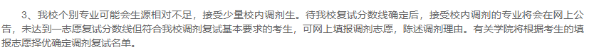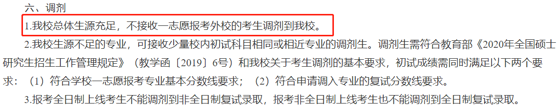 ①在一志愿考生滿足復試比例(一般為1:1.2或1:1.5)的情況下不接受調劑。
