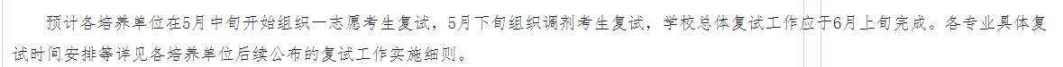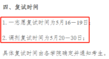 一志愿充足不接收調劑;5月18日起進行一志愿復試,5月26日起開始調劑復試工作。