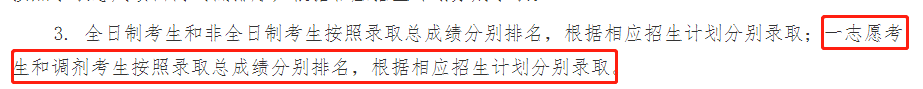 一志愿與調劑考生分別排名擇優錄取。