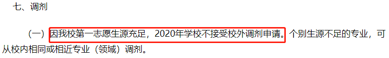 一志愿生源相對不足的情況下,接受少量校內調劑生;一志愿生源充足則不接受調劑,按考生總成績排名擇優錄取。