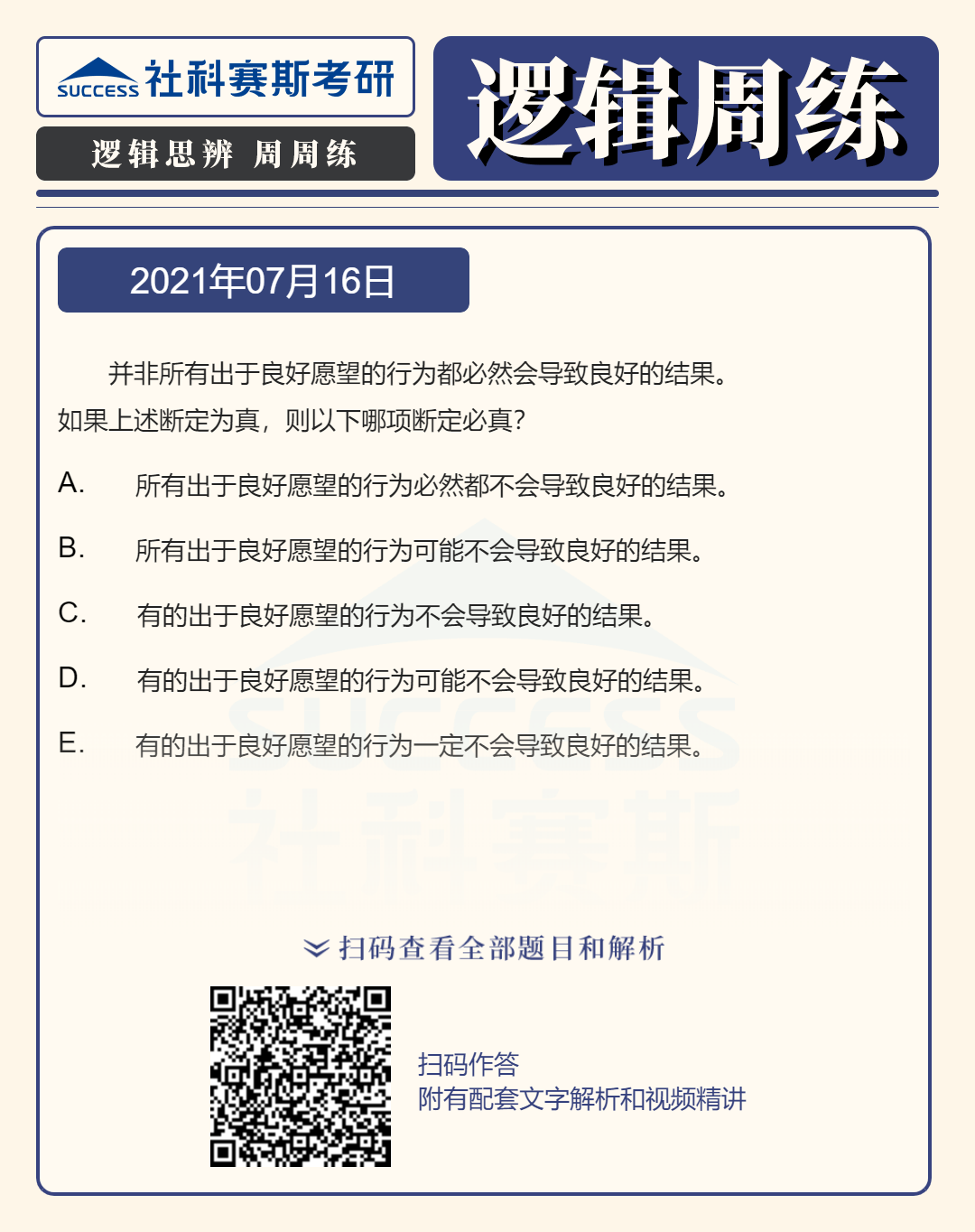 邏輯思辨周周練,考研邏輯專項練習,攻克邏輯難關!今天小編整理了“2022MPAcc邏輯備考:7月16日邏輯專項練習及答案”,希望能對廣大考生有所幫助!