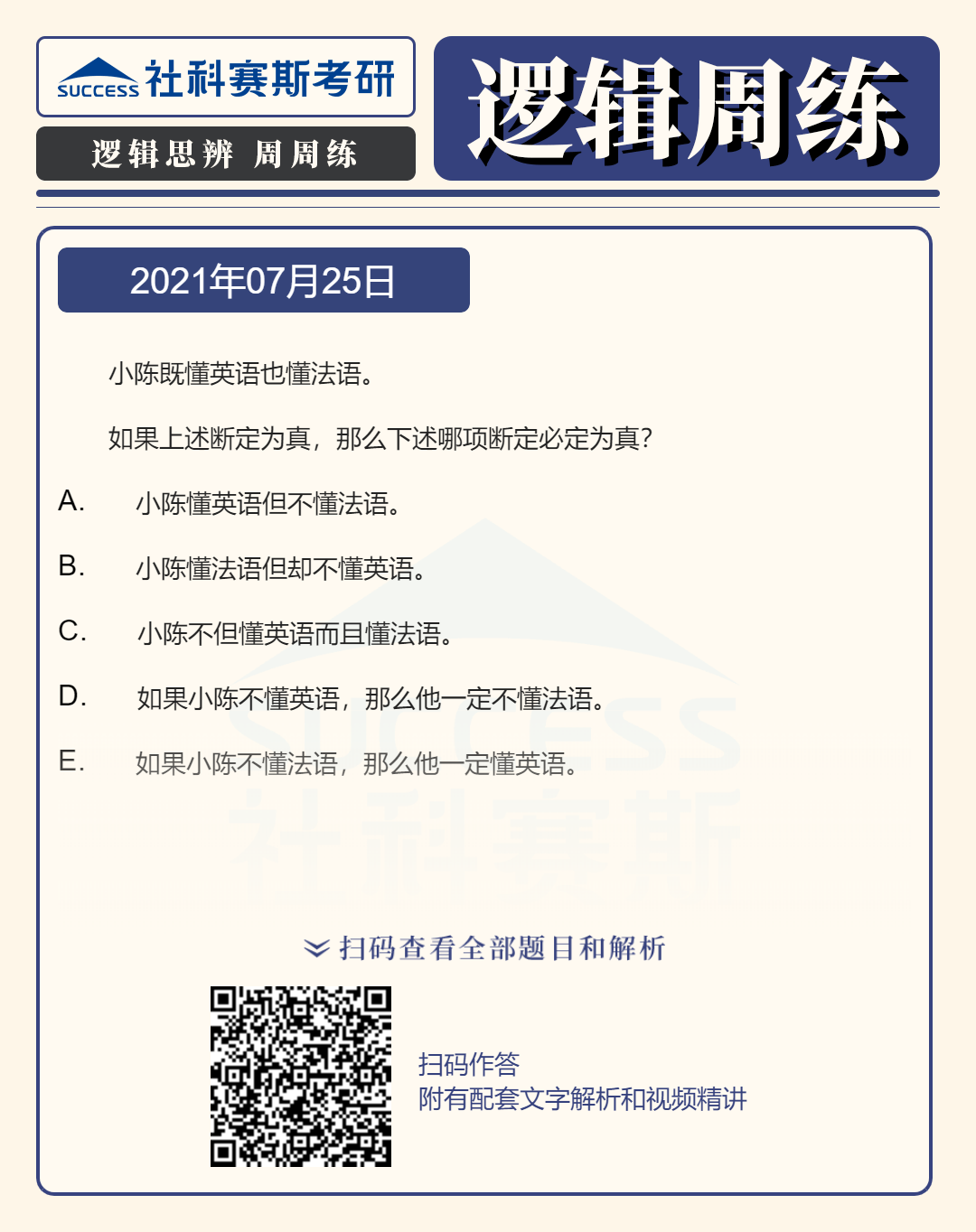 邏輯思辨周周練,考研邏輯專項練習,攻克邏輯難關!今天小編整理了“2022MPAcc邏輯備考:7月25日邏輯專項練習及答案”,希望能對廣大考生有所幫助!
