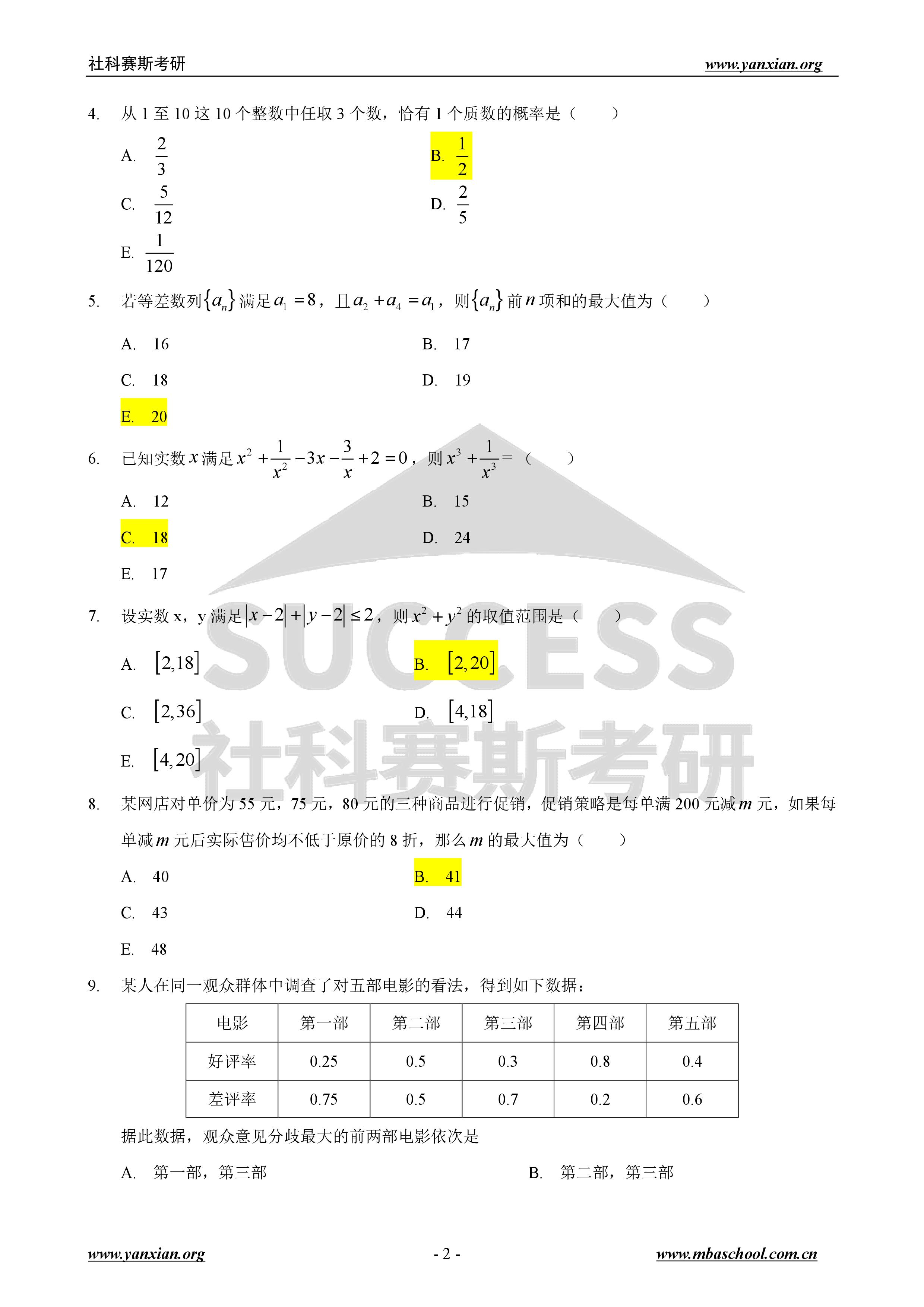 2020考研邏輯真題:2020年管理類聯考邏輯真題及解析
