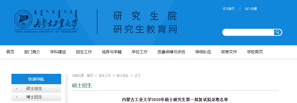 2020MPAcc擬錄取名單:內蒙古工業大學2020年碩士研究生第一批復試擬錄取名單