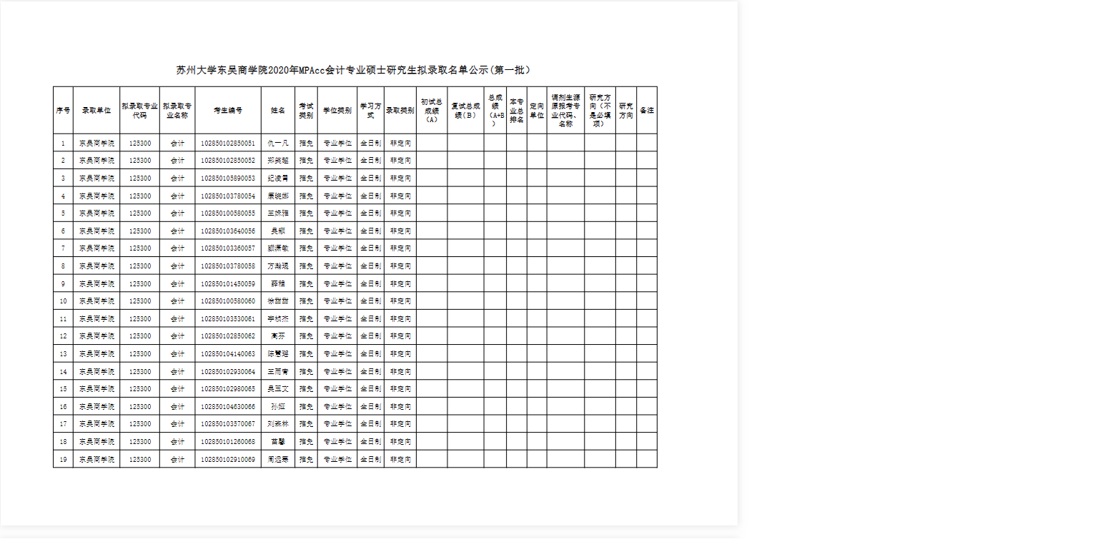 2020MPAcc擬錄取名單:蘇州大學(xué)東吳商學(xué)院2020年MPAcc會計專業(yè)碩士研究生擬錄取名單公示