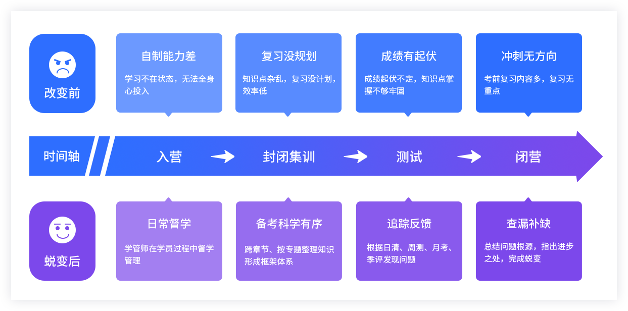 暑期營+秋季營+沖刺營 全程班主任督學,全程答疑,全程測評,精品資料,制定個性化學習方案,—對一擇校 |