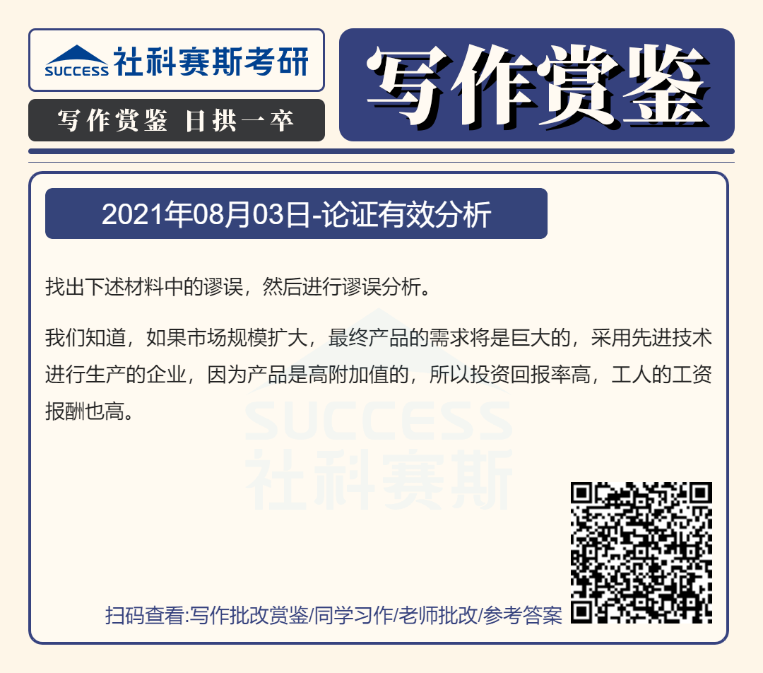 以上就是小編為大家整理“2022MPAcc寫作備考:8月3日寫作鑒賞及答案”的全部?jī)?nèi)容,希望各位考生堅(jiān)持利用起來(lái),想要獲取更多內(nèi)容請(qǐng)持續(xù)關(guān)注本網(wǎng)站。