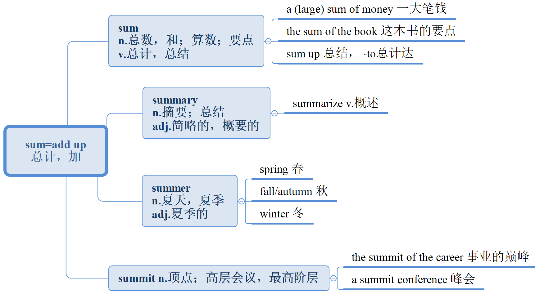 以上就是小編分享“2021MPAcc英語學習 | 科學詞根記憶:sum=add up”的全部內容,希望你們的英語成績能更上一層樓,越來越好。